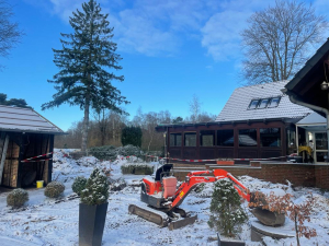 Heute Nacht hat es ein wenig geschneit und vormittags ist die Sonne rausgekommen. So sieht die Baustelle sehr sauber und aufgeräumt und fast ein wenig romantisch aus…