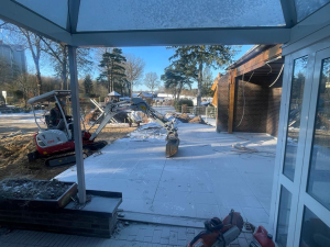 Zunächst wurde der Boden des Wintergartens ein letztes Mal “gereinigt” 😉