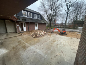 Die Fliesen im ehemaligen Eingangsbereich des Gasthauses (da, wo die Garderobe stand) müssen noch entfernt werden und letzte Reste der Rampe…